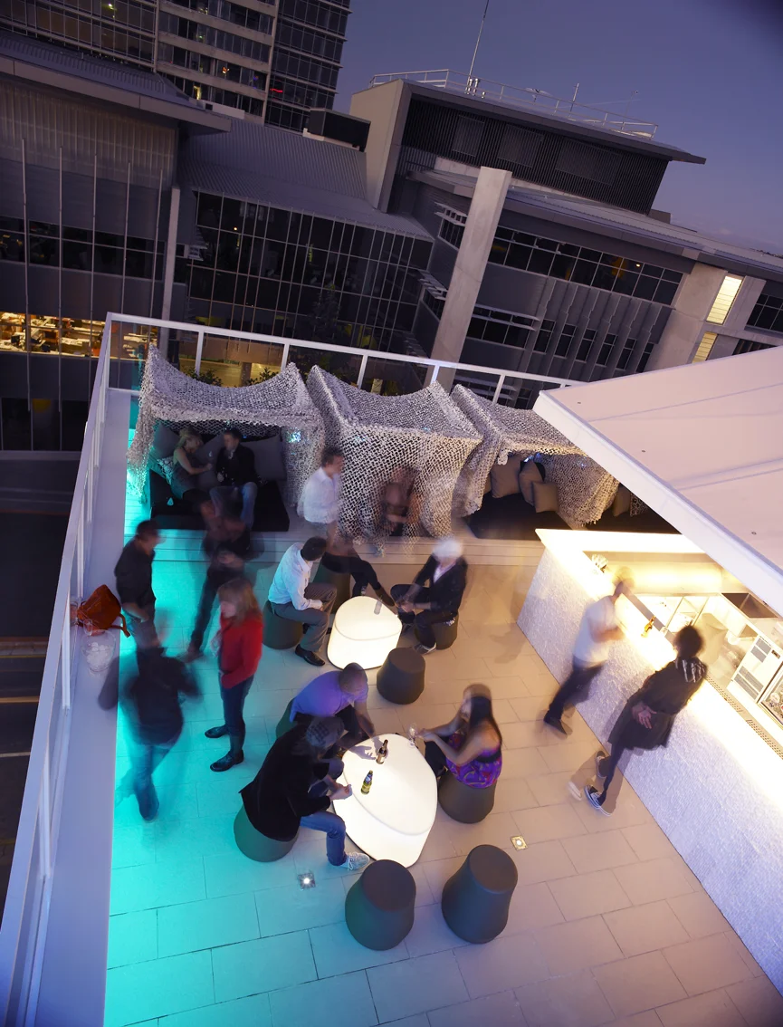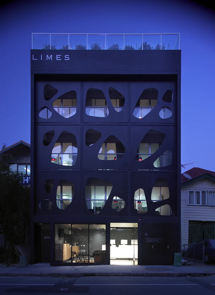 This building situated on the fringe of the Fortitude Valley entertainment hub offers a unique combination of boutique “design focused” short term accommodation complimented by Brisbane’s’ only open air cinema venue, rooftop bar and is Australia’s first ‘Design Hotels’ member. The conceptual Genesis of this project, as a 4 level boutique hotel comprising 21 rooms, evolved by TONIC as Project Architects into its current configuration with 2 additional levels due in part to the clients need for additional space for guest recreation areas, but also because of the realization that additional height may be considered by council due to recently approved higher heights of neighbouring buildings.