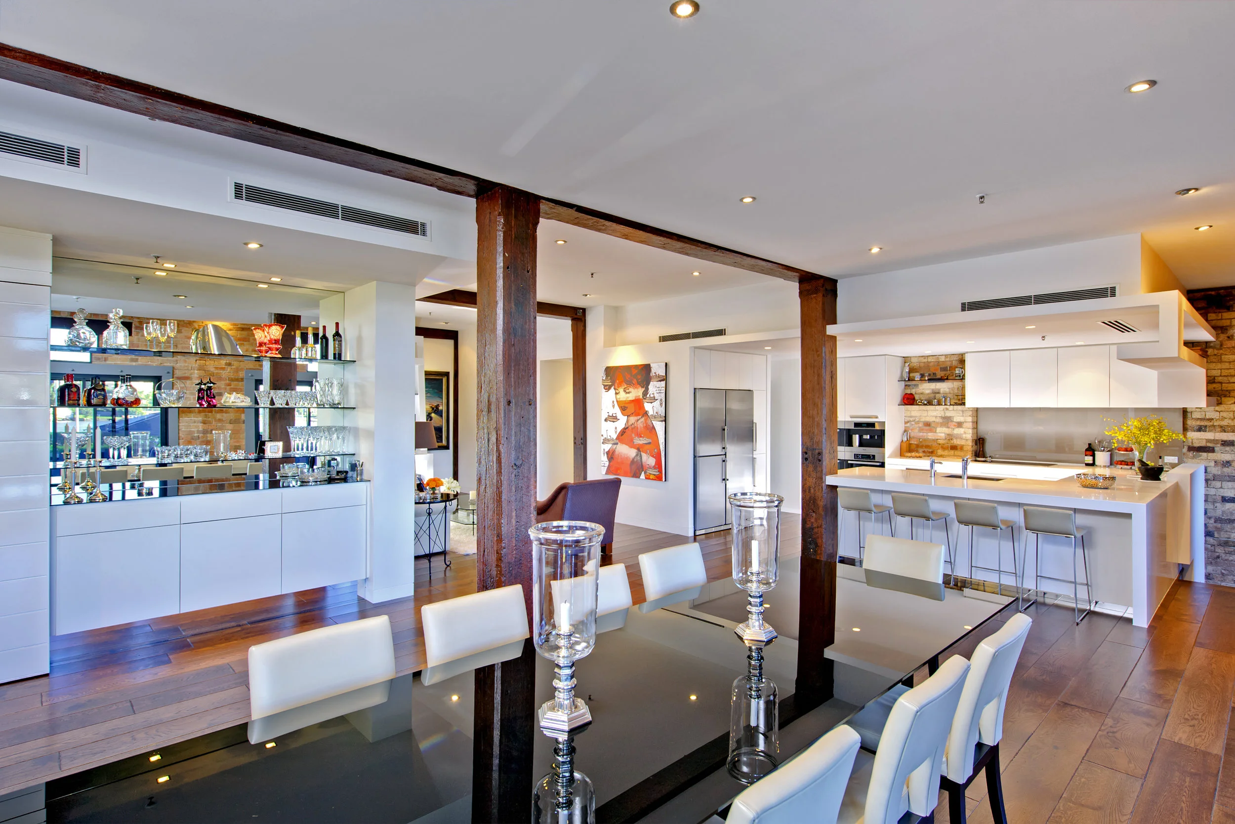 This project saw us work with two experienced property developers whose design understanding propelled this huge redesign into what it is today. Their experience culminated into the joining of two existing apartments, 2131 + 2132, in the Refinery Building at New Farm (previously refurbished by Mirvac and HPA architects) to create their dream home. This project was a genuine combination of client and architect synergy to create a rewarding outcome for all parties.