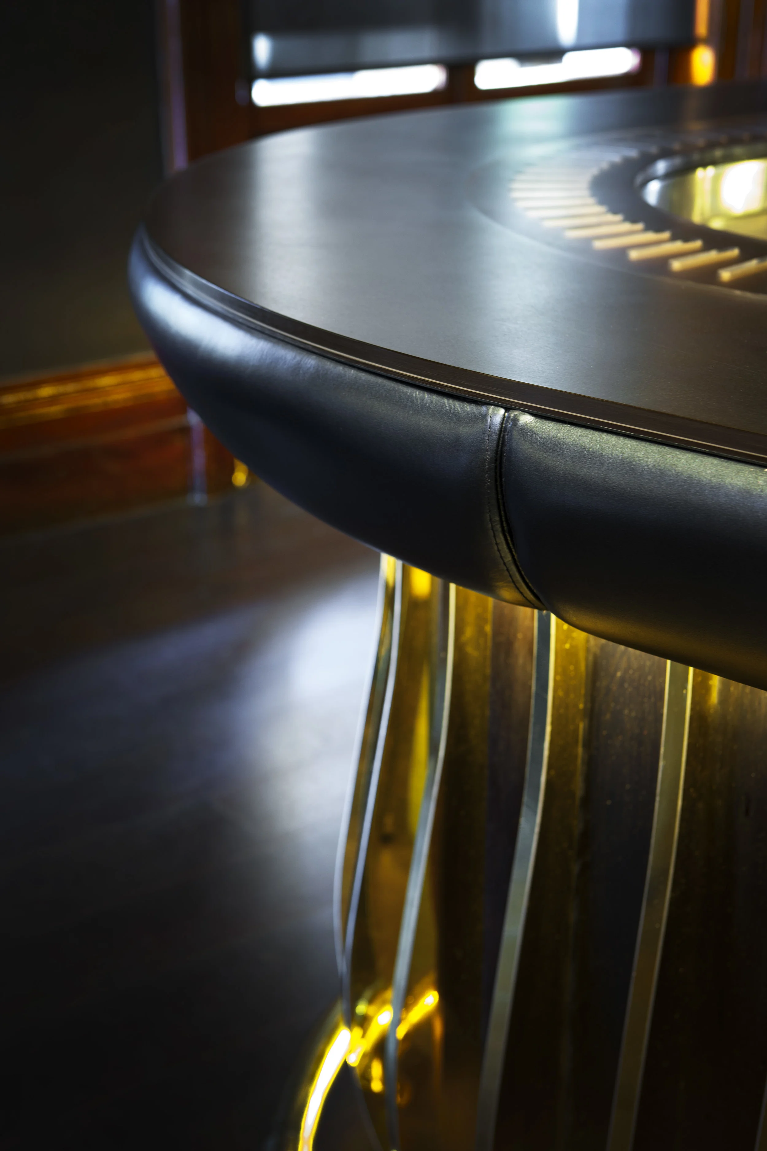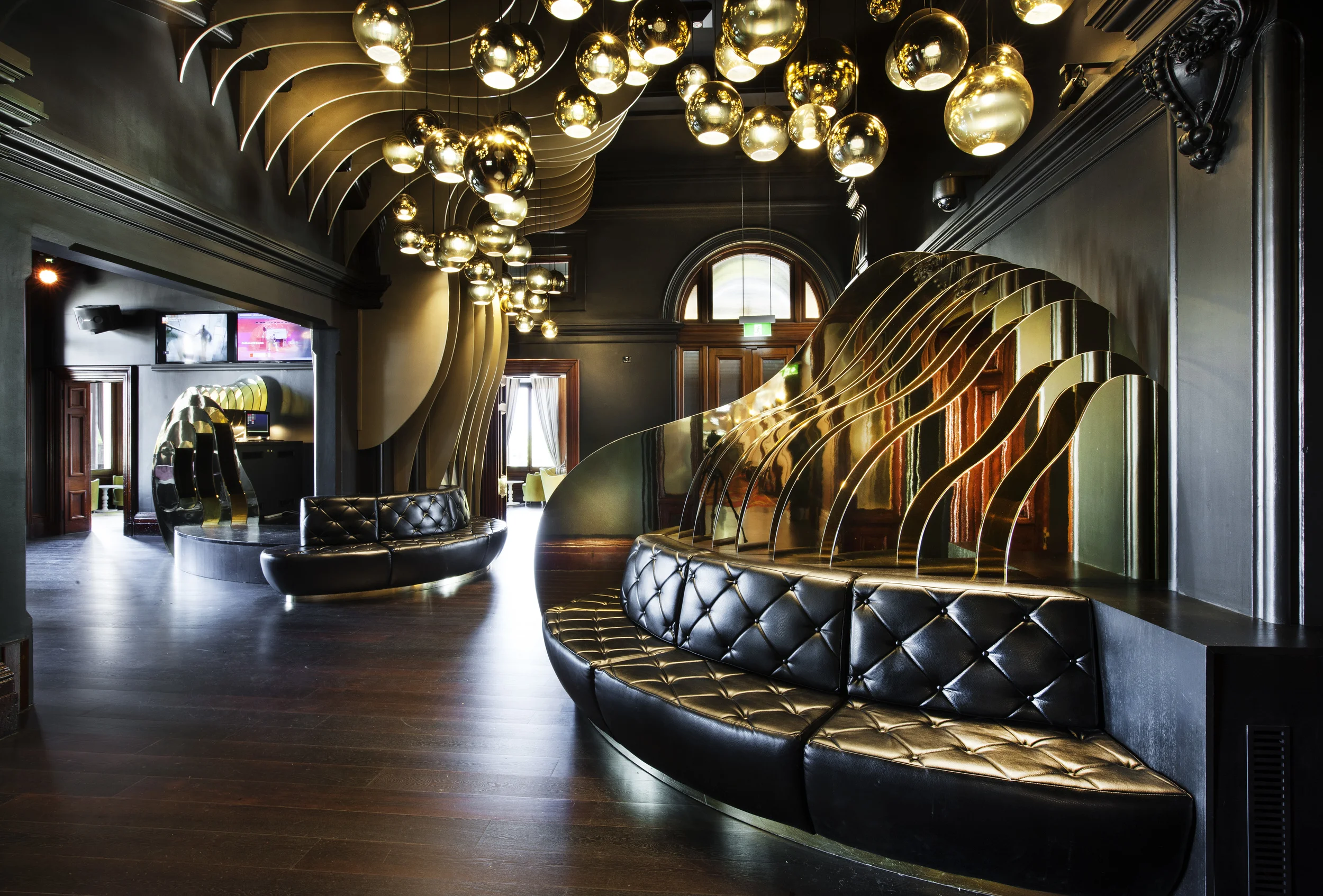The new Treasury Casino Bar - The Kitty is born out of the desire to create a 24 hour destination, to entice, to watch, to be seen, to meet, to escape, to relax, to enjoy. It strives to be a destination of choice for the those looking for something sleek and fashionable. Aesthetically referencing modern glam, with black, gold and reflective surfaces to create a base material palette that is warm and inviting during both day and night.